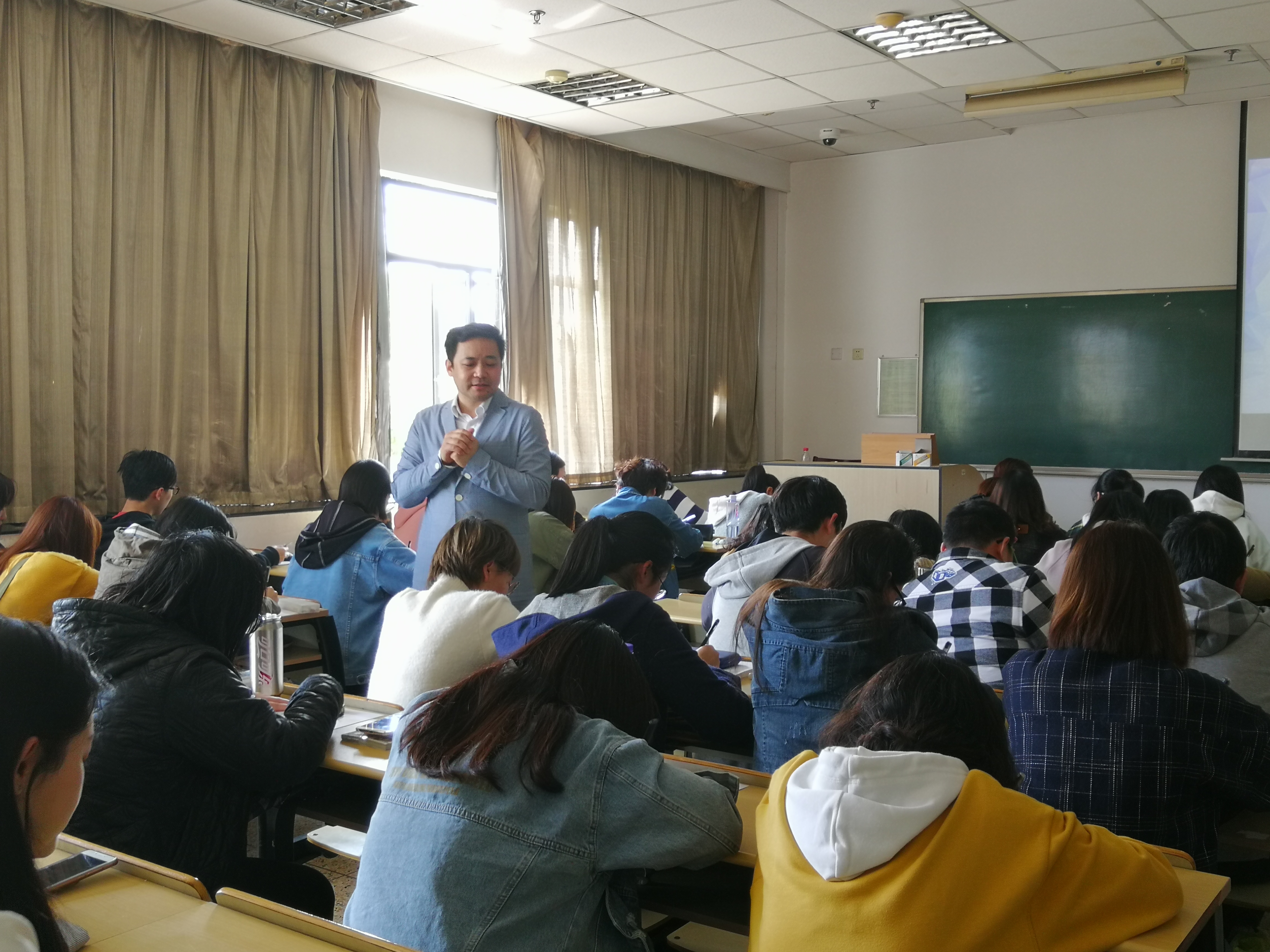 3月27日,笈川幸司走进了日语16级的课堂,在A227教室为学生讲述了日语学习的方法。笈川幸司为北京日本学研究中心硕士、专攻日语语音学。自2001年起在中国从事日语教育,在北京大学和清华大学任教十余年,培养的学生有近两百人在日语竞赛中获得冠军。2015年完成欧洲14国日语演讲马拉松,2016年完成27国世界日语演讲马拉松。2011年至今在中国104所城市363所大学开展日语演讲马拉松活动。2016年获得日本外务大臣表彰个人奖。笈川幸司老师详细讲述了如何进行演讲,如何记单词,如何练听力,日语语音和发音的特点。还讲述了学生如何练日语会话的能力,如何让自己能讲述更多的内容,学生们听后都受益匪浅,对自己学习日语的信心更加足了。希望笈川幸司老师能多走进学生的课堂,多为学生讲解日语学习之法。