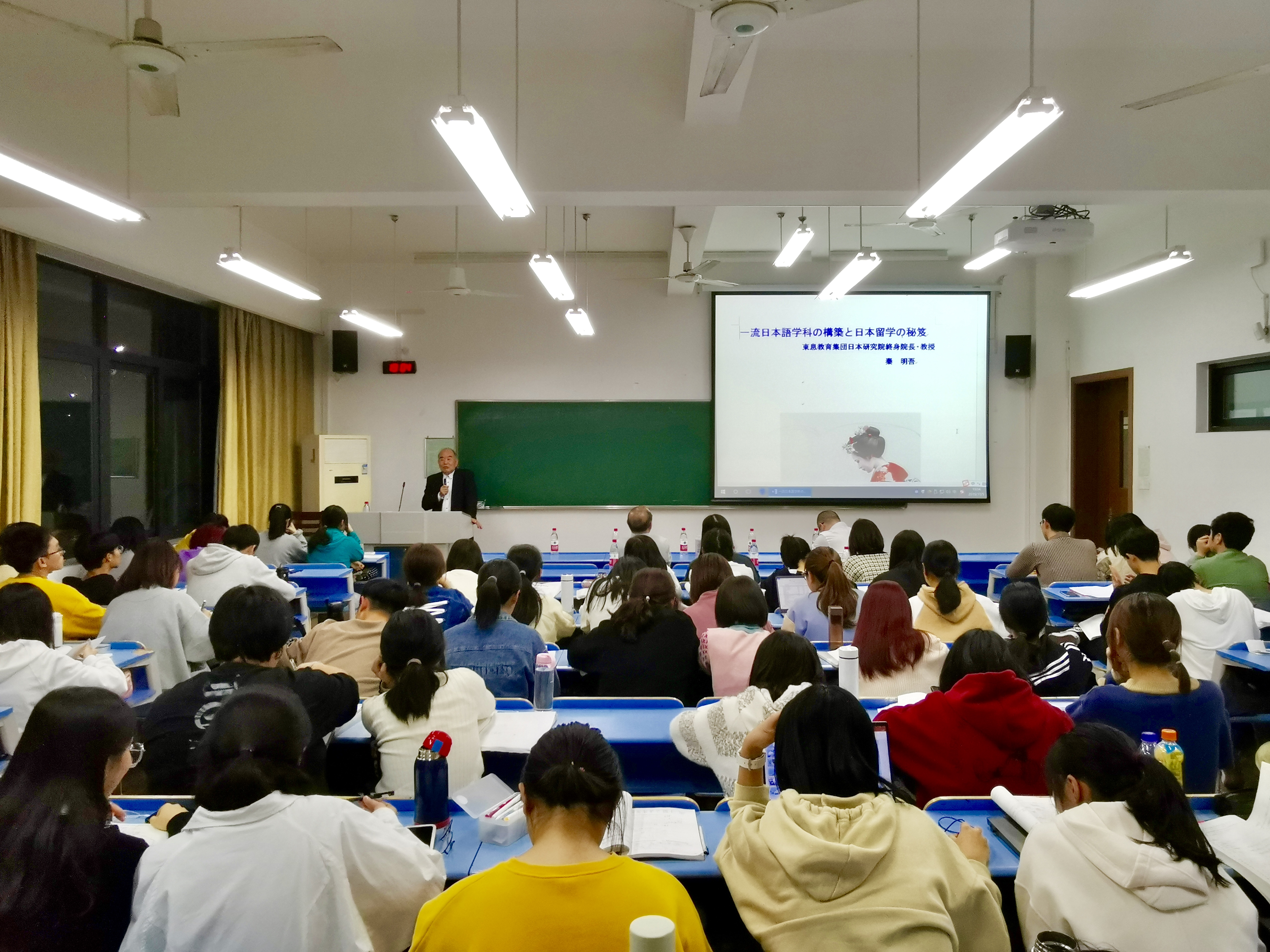 2019年11月5日,okpay下载 举行了首届东息杯日本研究论文竞赛颁奖仪式,邀请到中国政府特殊津贴获得者、东息教育集团日本研究院终身院长秦明吾教授来学院做《一流日语专业的建设和日本留学相关秘籍》的分享报告。