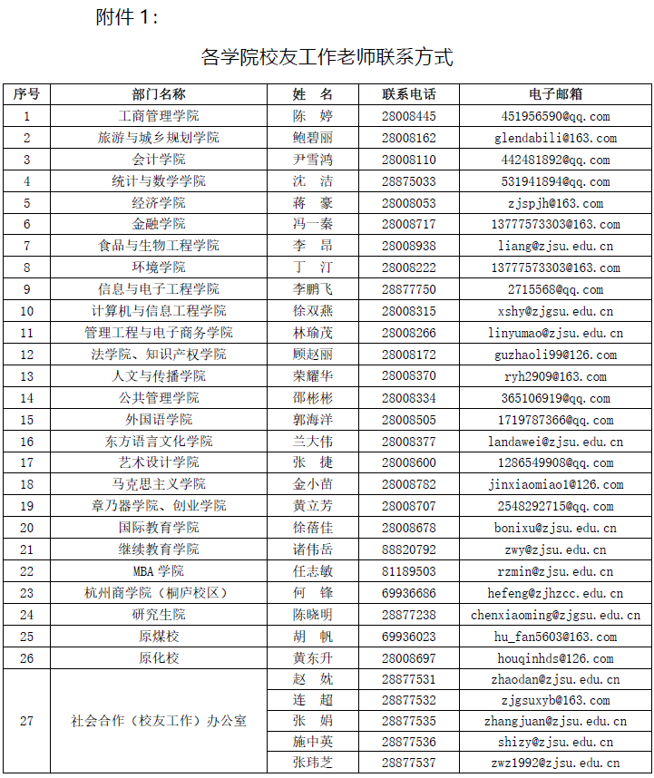 请班级负责人扫描下方二维码进入微信联络群,以便后期沟通交流。如二维码失效,请添加商大校友总会微信号:zjsu1911。