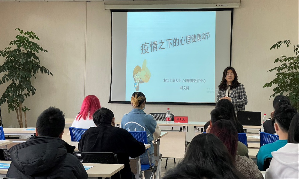 讲座伊始,胡老师倾听了同学们当前存在的各种心理调适诉求,围绕同学们提出的压力管理问题详细讲述了心理压力、不良情绪所产生的各种情况及应对策略,教导同学们如何感受自我放松心态。随后,胡老师叮嘱同学们,目前校园疫情防控趋于常态化,同学们一定要遵守国家和学校的各项防疫规定,肩负起当代大学生应有的责任和义务,用实际行动支持全社会的防疫工作。