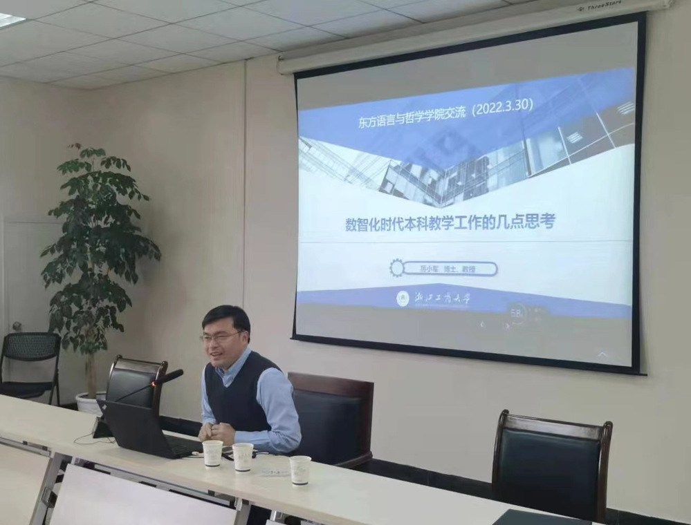 3月30日下午,校教务处处长厉小军教授受邀来okpay下载 作了题为“数智化时代本科教学工作的几点思考”的讲座,okpay下载 江静院长、董科副院长及日语系、阿拉伯语系、哲学系教师三十余人到场聆听。
