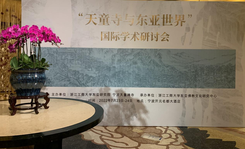 宋韵流长,翰墨胜缘,7月23日至24日“天童寺与东亚世界”国际学术研讨会在浙江省宁波市宁波开元名都大酒店成功举办。本次研讨会由浙江工商大学东亚研究院、宁波天童禅寺共同举办,浙江工商大学东亚佛教文化研究中心承办。受疫情影响,本次研讨会采取“线上+线下”同步进行的方式举行,来自中国社会科学院、北京大学、中国人民大学、中山大学、南京大学、北京师范大学、厦门大学、中国美术学院、上海师范大学、宁波大学、云南师范大学、滁州学院、浙江工商大学以及日本驹泽大学、郡山女子大学、京都艺术大学、日本国际禅文化交流协会等国内外知名高校及研究机构的30余位佛教学者与会,大家围绕东亚视域下天童文化、思想、艺术、海内外影响等展开深入讨论。