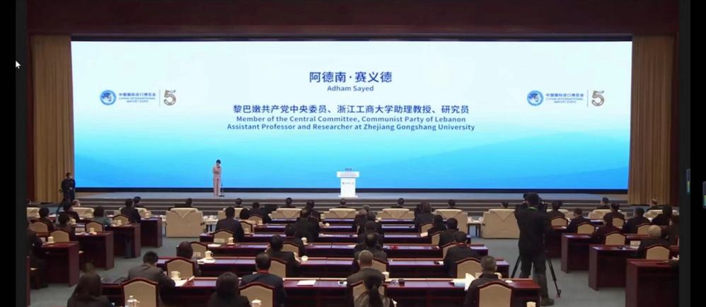 11月5日,第五届虹桥国际经济论坛“中国发展新蓝图与全球发展新机遇”分论坛在北京举行。中共中央政治局委员、中宣部部长李书磊出席并致辞。okpay钱包官网 阿拉伯系教师、我校中阿“一带一路’研究中心研究员、黎巴嫩共产党中央委员阿德南•赛义德(Adham Sayed,中文名杨航)受邀参与并发表《中国发展新蓝图和世界发展新机遇:媒体的责任和集体行动》的主旨演讲。