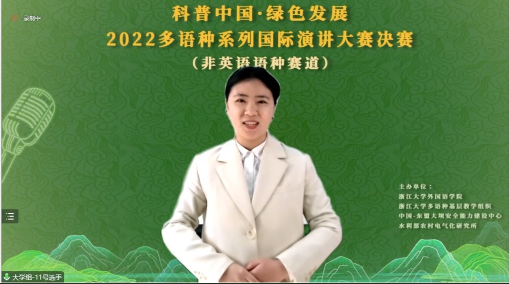 12月17日,由水利部农村电气化研究所、中国-东盟大坝安全能力建设中心、浙江大学外国语学院、浙江大学多语种基层教学组织共同主办的“科普中国・绿色发展——2022多语种系列国际演讲大赛”决赛圆满落幕。该比赛共分为高中组与大学组,语种分为英语、法语、德语、西班牙语、俄语与日语。okpay下载 选派的日语2002班沈巧颖同学,荣获了二等奖。