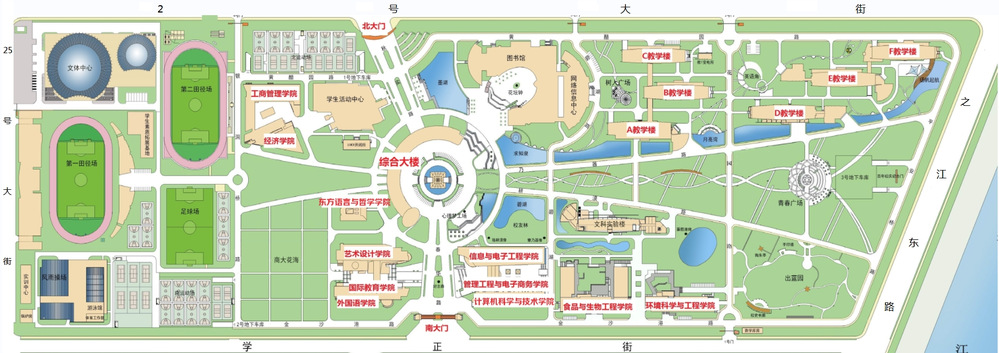 3.浙江工商大学下沙校区学院及教学楼分布图详见下图,具体复试地点请关注学院官网通知,请考生提前熟悉复试场地路线。
