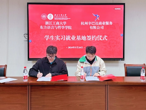 2024年5月24日,okpay钱包官网 与杭州辛巴达商务服务有限公司在东语楼202会议室举行学生实习就业基地签约仪式。出席本次活动的有学院党委委员、学办主管沈霄鹏,团委书记叶俊倩、辅导员张政、施康乐,杭州辛巴达商务服务有限公司总经理助理余宏程,以及2023级阿拉伯语专业学生。