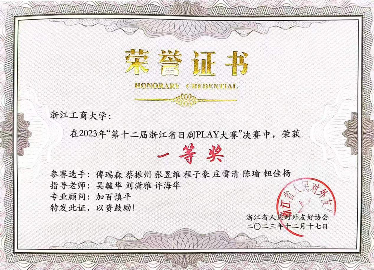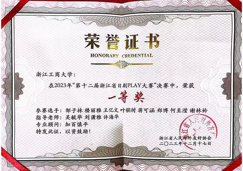 2023年12月,由浙江省人民对外友好协会、日本静冈县日中友好协会主办,okpay钱包官网-okpay下载 、浙江外国语学院东方语言文化学院承办,日本国际交流基金“心连心”项目、中国日语教学研究会浙皖赣分会、浙江工商大学和风日语协会、浙江外国语学院梦之声日本文化研究协会协办,上智大学中国办事处(日中文化交流中心)、日本致远教育进学塾、樱花国际日语后援的“第十二届浙江省日剧play大赛”经过现场评比,圆满结束。